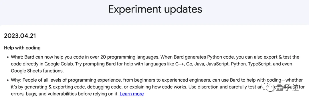 至于Bard本身,最近这几个月一直都有重磅更新: