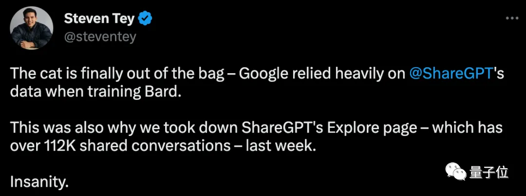 几个月前,有爆料称,谷歌Bard使用了ShareGPT中的内容作为训练数据。